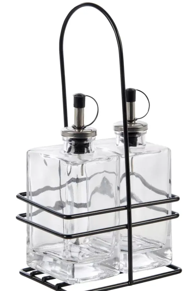 Azeiteiras-CASA Bistro Galheteiro Em Suporte Preto, Transparente