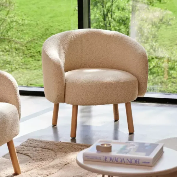 Boli É Uma Poltrona Redonda E Bege Feita De Tecido Boucle. A Tendência Do Momento. Com A Sua Forma Arredondada, Tecido Macio E Pernas De Madeira, Esta Poltrona Confere Calor A Qualquer Interior. Ideal Para A Sala De Estar Ou Canto De Sentar. Boli Também Está Disponível Em Castanho E Como Sofá Grande.